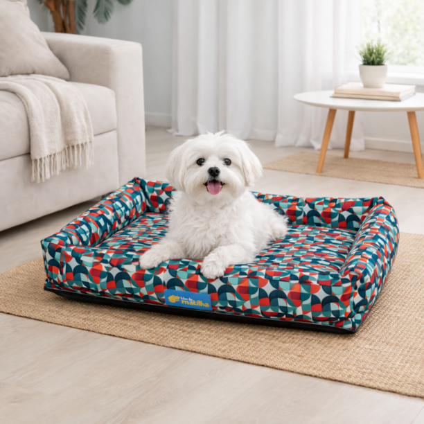 Seu formato é ideal para o dog se acomodar e poder apoiar, principalmente se a idade chegou para seu amigão. Suas laterais possuem enchimento de fibra silicionada e são super macias.