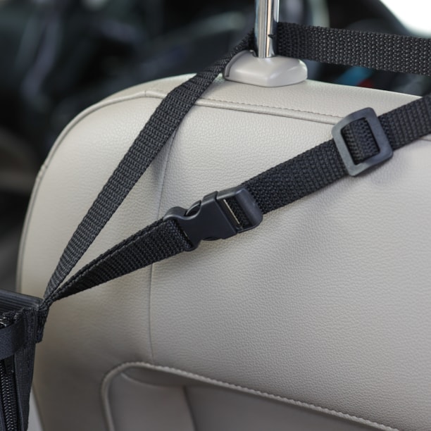 Alças: 4 alças reguláveis para prender nos encostos de cabeça.